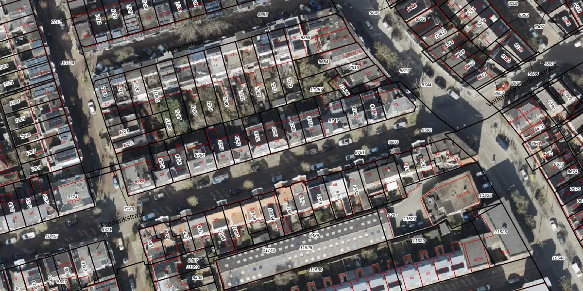 Het perceel waarop Frederikstraat 42 staat heeft een oppervlakte van 91 m². Dit is een klein perceel. De perceeloppervlakte wordt geregistreerd door het Kadaster. Gedetailleerde informatie over de maten van dit perceel kunt u vinden in het rapport Kadastrale kaart met maatvoering van Frederikstraat 42.
