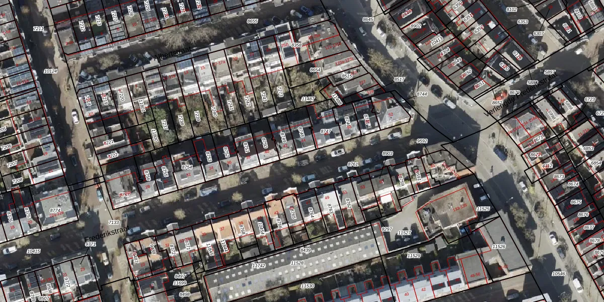 Frederikstraat 44 is gelegen op kadastraal perceel GNG00B8748. Deze kadastrale aanduiding is uniek en wordt gebruikt door het Kadaster om eigendomsrechten en andere zakelijke rechten vast te leggen. Het perceel maakt onderdeel uit van de kadastrale gemeente Groningen.