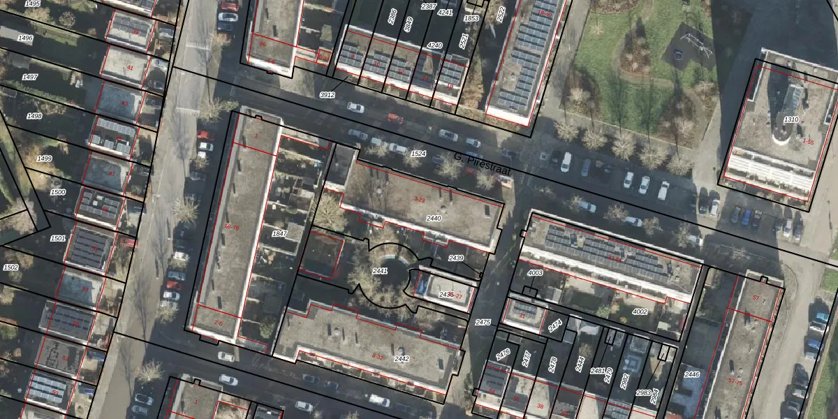 G. Pirestraat 21 is gelegen op kadastraal perceel HMN02O2440. Deze kadastrale aanduiding is uniek en wordt gebruikt door het Kadaster om eigendomsrechten en andere zakelijke rechten vast te leggen. Het perceel maakt onderdeel uit van de kadastrale gemeente Helpman.