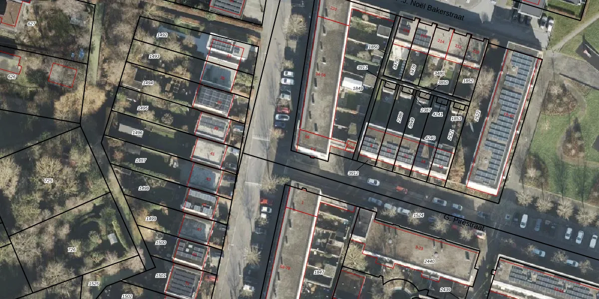 Het perceel waarop G. Pirestraat 4 staat heeft een oppervlakte van 1277 m². Dit is een zeer groot perceel. De perceeloppervlakte wordt geregistreerd door het Kadaster. Gedetailleerde informatie over de maten van dit perceel kunt u vinden in het rapport Kadastrale kaart met maatvoering van G. Pirestraat 4.