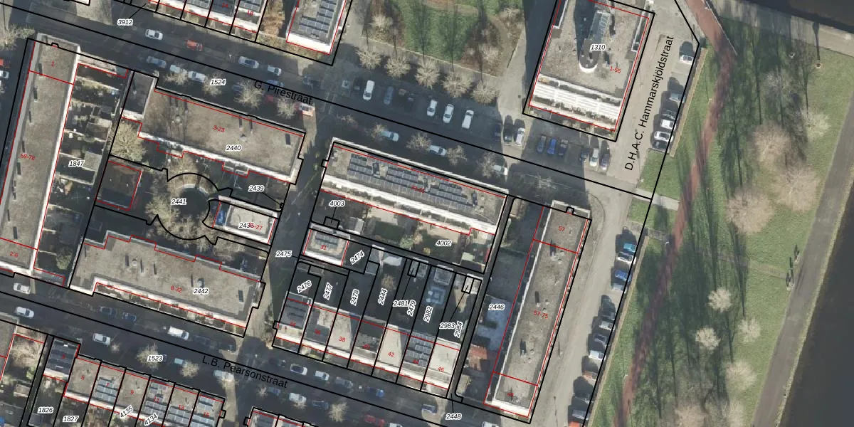 Het perceel waarop G. Pirestraat 55 staat heeft een oppervlakte van 817 m². Dit is een groot perceel. De perceeloppervlakte wordt geregistreerd door het Kadaster. Gedetailleerde informatie over de maten van dit perceel kunt u vinden in het rapport Kadastrale kaart met maatvoering van G. Pirestraat 55.