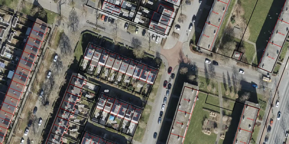 Het perceel waarop Galenuslaan 34 staat heeft een oppervlakte van 310 m². Dit is een groot perceel. De perceeloppervlakte wordt geregistreerd door het Kadaster. Gedetailleerde informatie over de maten van dit perceel kunt u vinden in het rapport Kadastrale kaart met maatvoering van Galenuslaan 34.