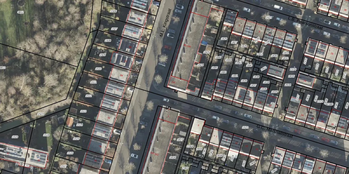 Het perceel waarop G.C. Marshallstraat 4 staat heeft een oppervlakte van 1085 m². Dit is een zeer groot perceel. De perceeloppervlakte wordt geregistreerd door het Kadaster. Gedetailleerde informatie over de maten van dit perceel kunt u vinden in het rapport Kadastrale kaart met maatvoering van G.C. Marshallstraat 4.