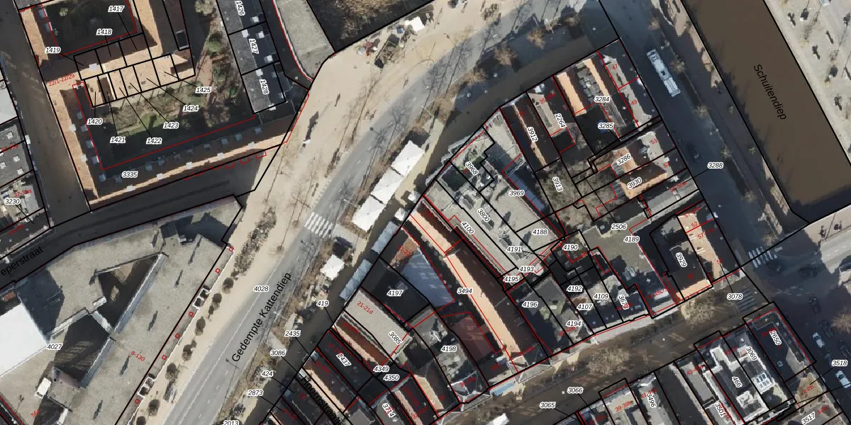 Het perceel waarop Gedempte Kattendiep 23-1 staat heeft een oppervlakte van 739 m². Dit is een groot perceel. De perceeloppervlakte wordt geregistreerd door het Kadaster. Gedetailleerde informatie over de maten van dit perceel kunt u vinden in het rapport Kadastrale kaart met maatvoering van Gedempte Kattendiep 23-1.