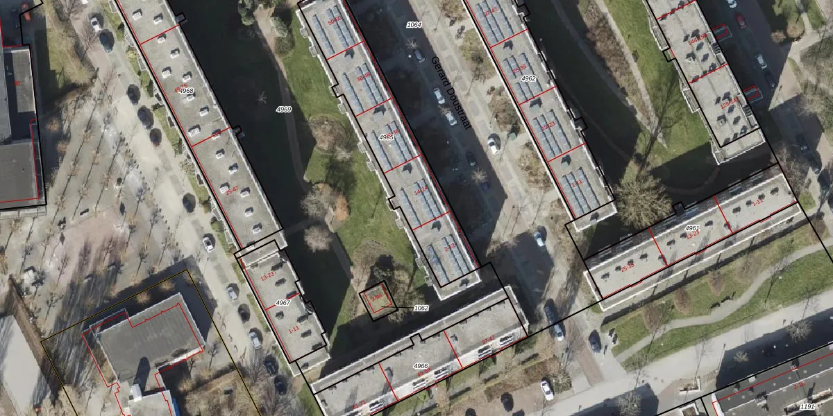 Gerard Doustraat 24 is gelegen op kadastraal perceel GNG00L4965. Deze kadastrale aanduiding is uniek en wordt gebruikt door het Kadaster om eigendomsrechten en andere zakelijke rechten vast te leggen. Het perceel maakt onderdeel uit van de kadastrale gemeente Groningen.