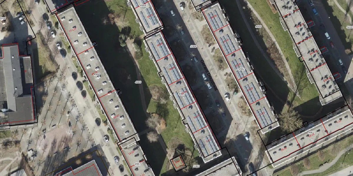 Gerard Doustraat 32 is gelegen op kadastraal perceel GNG00L4965. Deze kadastrale aanduiding is uniek en wordt gebruikt door het Kadaster om eigendomsrechten en andere zakelijke rechten vast te leggen. Het perceel maakt onderdeel uit van de kadastrale gemeente Groningen.