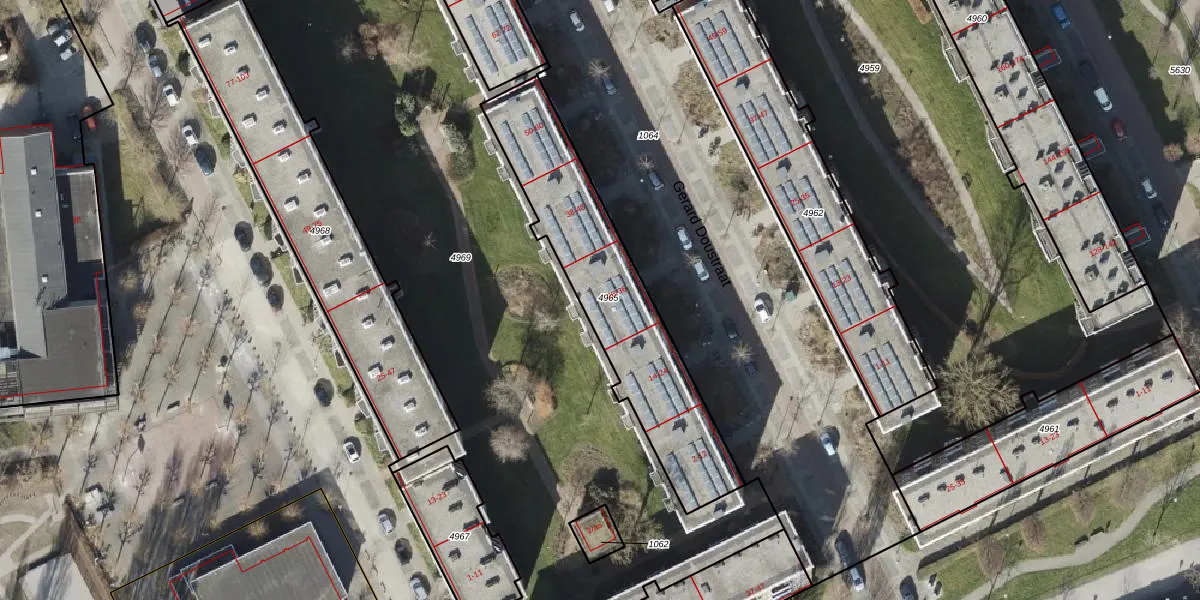 Het perceel waarop het adres ligt is GNG00-L-4965. De afkorting 'GNG00' staat voor kadastrale gemeente Groningen. De oppervlakte van het perceel is 837 m². Dat is groter dan gemiddeld in Groningen, waar de gemiddelde perceeloppervlakte op 770,7 m² ligt. Het kleinste perceel in de kadastrale gemeente is 0 m² groot. De grootste perceeloppervlakte is 31,8 ha. Er zijn 30 adressen aanwezig op het perceel. In de Basisregistratie Kadaster (BRK) werden de grenzen van het perceel geregistreerd op 14-08-2003.