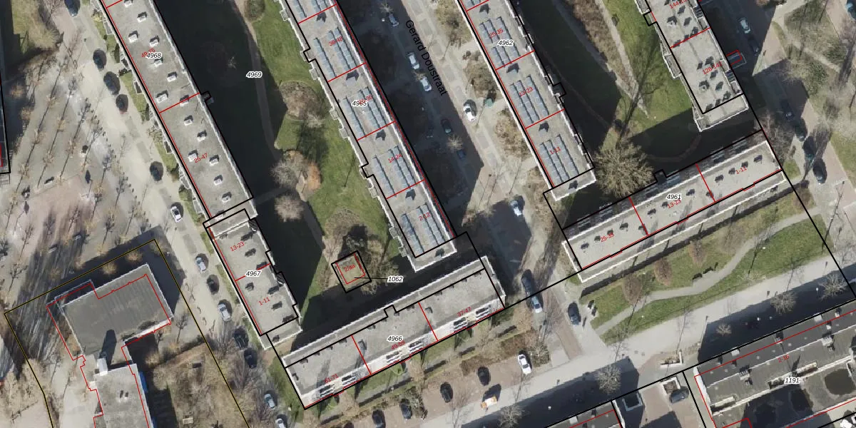 Het perceel waarop Gerard Doustraat 4 staat heeft een oppervlakte van 837 m². Dit is een groot perceel. De perceeloppervlakte wordt geregistreerd door het Kadaster. Gedetailleerde informatie over de maten van dit perceel kunt u vinden in het rapport Kadastrale kaart met maatvoering van Gerard Doustraat 4.