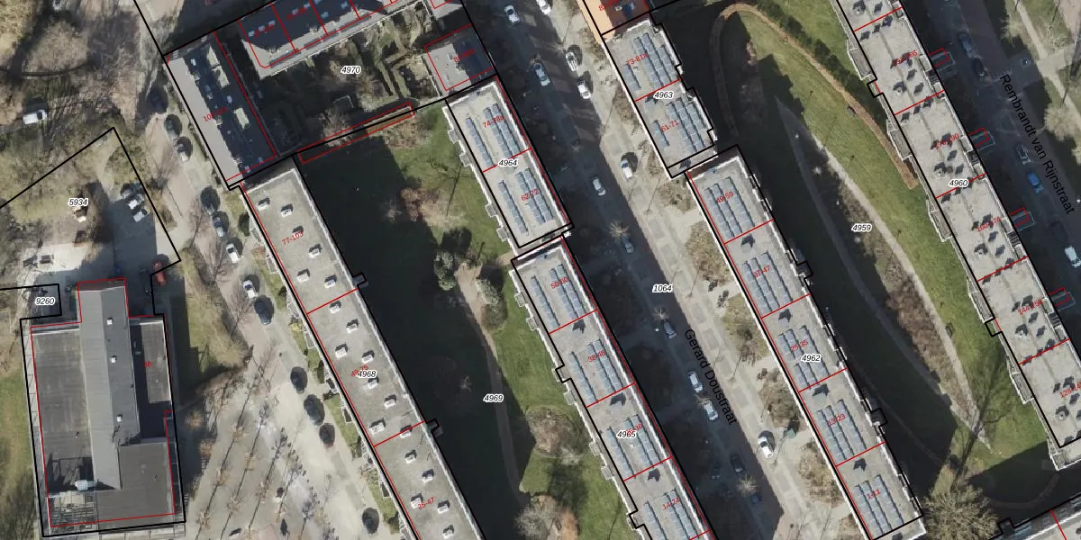 Het perceel waarop Gerard Doustraat 56 staat heeft een oppervlakte van 837 m². Dit is een groot perceel. De perceeloppervlakte wordt geregistreerd door het Kadaster. Gedetailleerde informatie over de maten van dit perceel kunt u vinden in het rapport Kadastrale kaart met maatvoering van Gerard Doustraat 56.