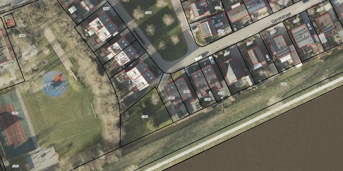 Gerststraat 31 is gelegen op kadastraal perceel NDK00B2802. Deze kadastrale aanduiding is uniek en wordt gebruikt door het Kadaster om eigendomsrechten en andere zakelijke rechten vast te leggen. Het perceel maakt onderdeel uit van de kadastrale gemeente Noorddijk.