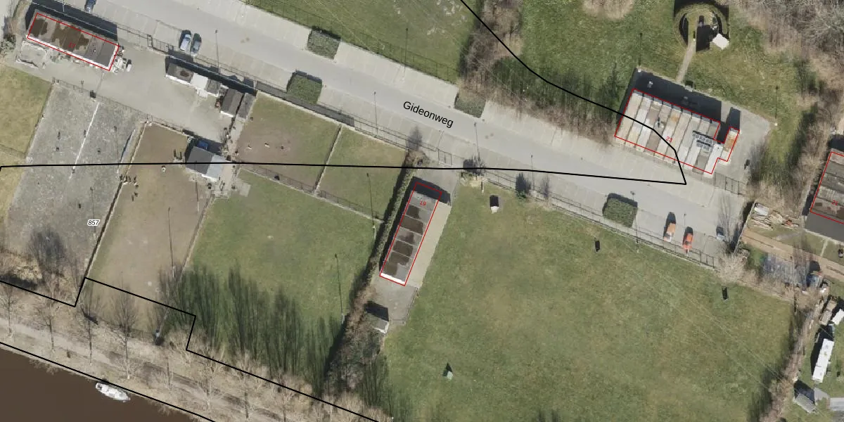 Het perceel waarop Gideonweg 19 staat heeft een oppervlakte van 8,5 ha. Dit is een zeer groot perceel. De perceeloppervlakte wordt geregistreerd door het Kadaster. Gedetailleerde informatie over de maten van dit perceel kunt u vinden in het rapport Kadastrale kaart met maatvoering van Gideonweg 19.