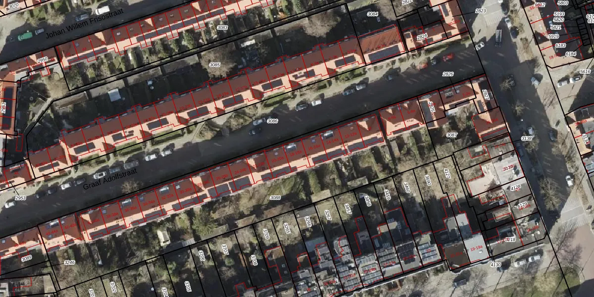 Het perceel waarop Graaf Adolfstraat 18-a staat heeft een oppervlakte van 3105 m². Dit is een zeer groot perceel. De perceeloppervlakte wordt geregistreerd door het Kadaster. Gedetailleerde informatie over de maten van dit perceel kunt u vinden in het rapport Kadastrale kaart met maatvoering van Graaf Adolfstraat 18-a.