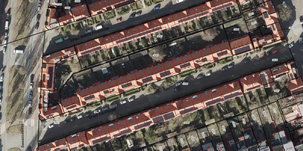 Het perceel waarop Graaf Adolfstraat 21-a staat heeft een oppervlakte van 2613 m². Dit is een zeer groot perceel. De perceeloppervlakte wordt geregistreerd door het Kadaster. Gedetailleerde informatie over de maten van dit perceel kunt u vinden in het rapport Kadastrale kaart met maatvoering van Graaf Adolfstraat 21-a.