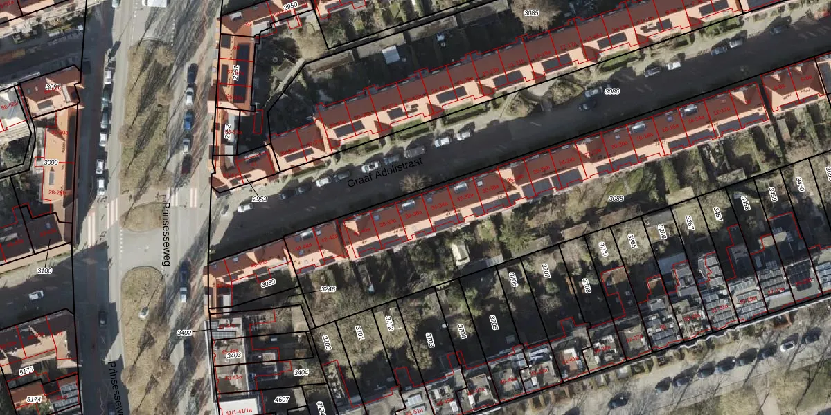 Het perceel waarop Graaf Adolfstraat 36-a staat heeft een oppervlakte van 3105 m². Dit is een zeer groot perceel. De perceeloppervlakte wordt geregistreerd door het Kadaster. Gedetailleerde informatie over de maten van dit perceel kunt u vinden in het rapport Kadastrale kaart met maatvoering van Graaf Adolfstraat 36-a.