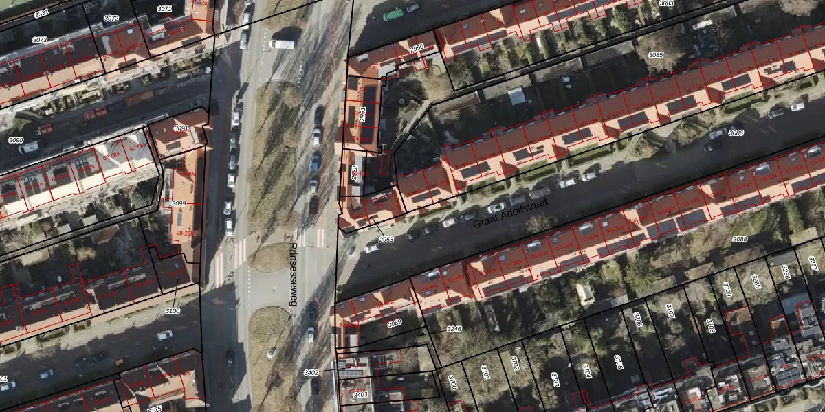 Het perceel waarop Graaf Adolfstraat 39 staat heeft een oppervlakte van 2613 m². Dit is een zeer groot perceel. De perceeloppervlakte wordt geregistreerd door het Kadaster. Gedetailleerde informatie over de maten van dit perceel kunt u vinden in het rapport Kadastrale kaart met maatvoering van Graaf Adolfstraat 39.