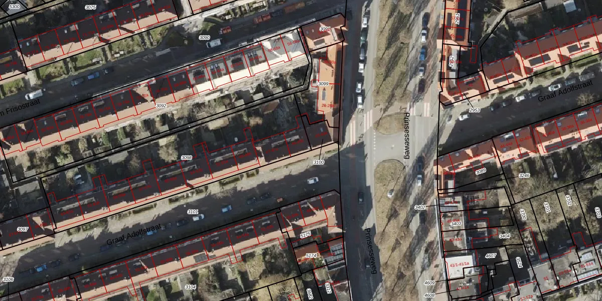 Het perceel waarop Graaf Adolfstraat 45-a staat heeft een oppervlakte van 1695 m². Dit is een zeer groot perceel. De perceeloppervlakte wordt geregistreerd door het Kadaster. Gedetailleerde informatie over de maten van dit perceel kunt u vinden in het rapport Kadastrale kaart met maatvoering van Graaf Adolfstraat 45-a.