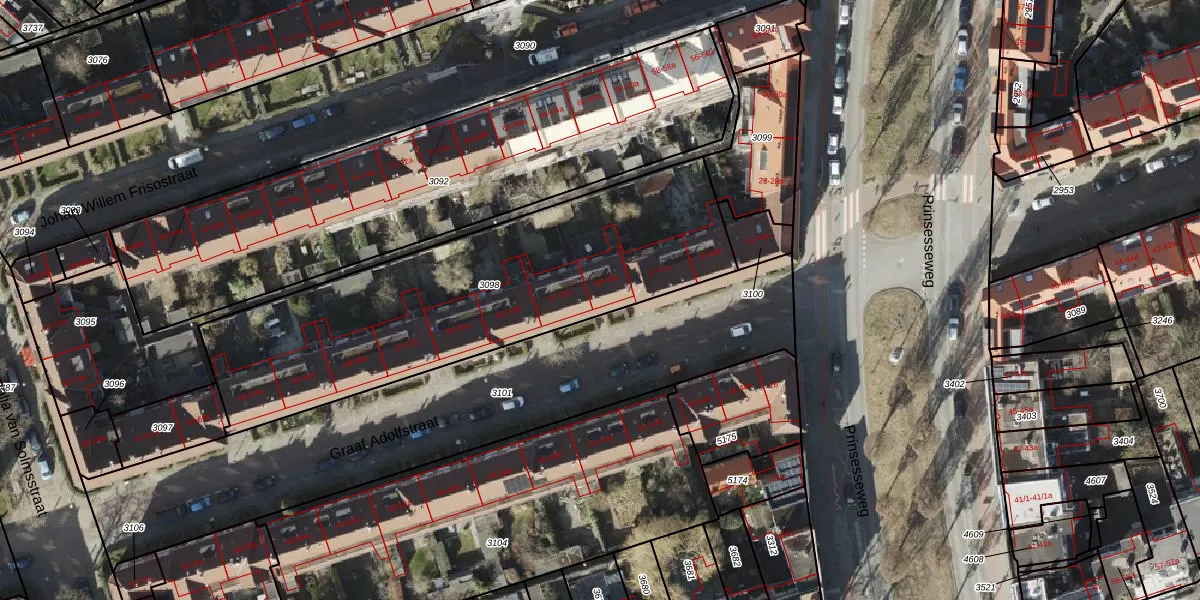 Het perceel waarop Graaf Adolfstraat 49 staat heeft een oppervlakte van 1695 m². Dit is een zeer groot perceel. De perceeloppervlakte wordt geregistreerd door het Kadaster. Gedetailleerde informatie over de maten van dit perceel kunt u vinden in het rapport Kadastrale kaart met maatvoering van Graaf Adolfstraat 49.