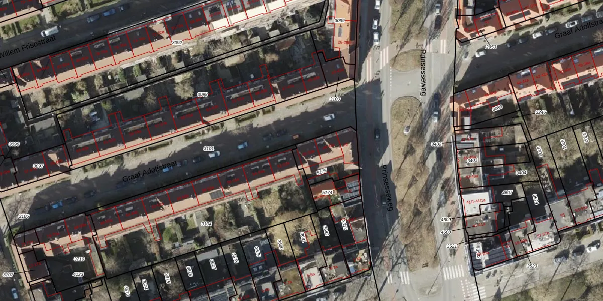 Graaf Adolfstraat 50 is gelegen op kadastraal perceel GNG00D5175. Deze kadastrale aanduiding is uniek en wordt gebruikt door het Kadaster om eigendomsrechten en andere zakelijke rechten vast te leggen. Het perceel maakt onderdeel uit van de kadastrale gemeente Groningen.