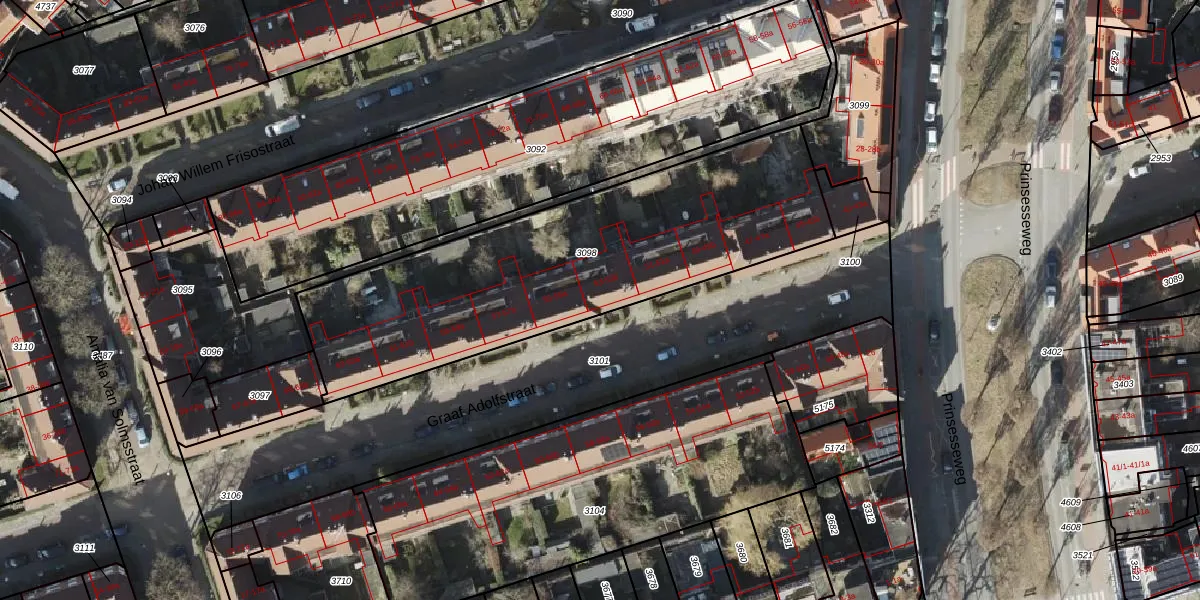 Graaf Adolfstraat 53 is gelegen op kadastraal perceel GNG00D3098. Deze kadastrale aanduiding is uniek en wordt gebruikt door het Kadaster om eigendomsrechten en andere zakelijke rechten vast te leggen. Het perceel maakt onderdeel uit van de kadastrale gemeente Groningen.