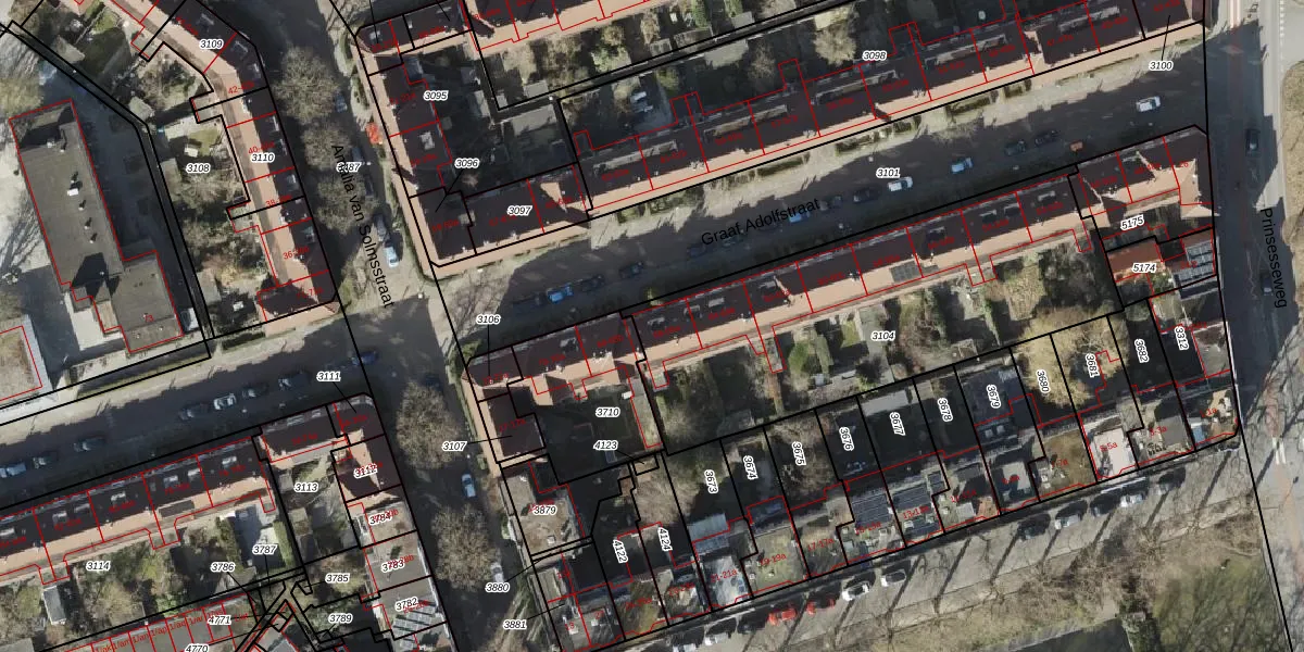 Het perceel waarop Graaf Adolfstraat 66 staat heeft een oppervlakte van 1713 m². Dit is een zeer groot perceel. De perceeloppervlakte wordt geregistreerd door het Kadaster. Gedetailleerde informatie over de maten van dit perceel kunt u vinden in het rapport Kadastrale kaart met maatvoering van Graaf Adolfstraat 66.