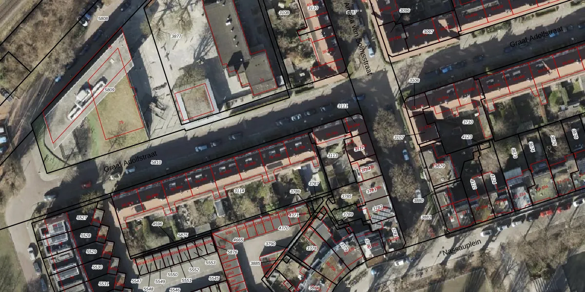 Graaf Adolfstraat 76 is gelegen op kadastraal perceel GNG00D3114. Deze kadastrale aanduiding is uniek en wordt gebruikt door het Kadaster om eigendomsrechten en andere zakelijke rechten vast te leggen. Het perceel maakt onderdeel uit van de kadastrale gemeente Groningen.
