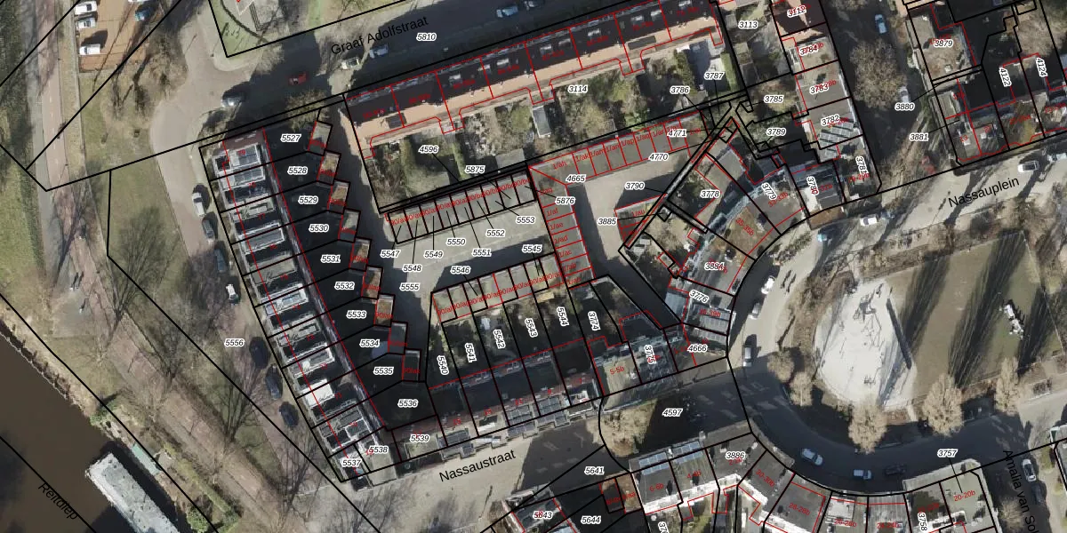 Het perceel waarop Graaf Adolfstraat 90-ab staat heeft een oppervlakte van 18 m². Dit is een klein perceel. De perceeloppervlakte wordt geregistreerd door het Kadaster. Gedetailleerde informatie over de maten van dit perceel kunt u vinden in het rapport Kadastrale kaart met maatvoering van Graaf Adolfstraat 90-ab.
