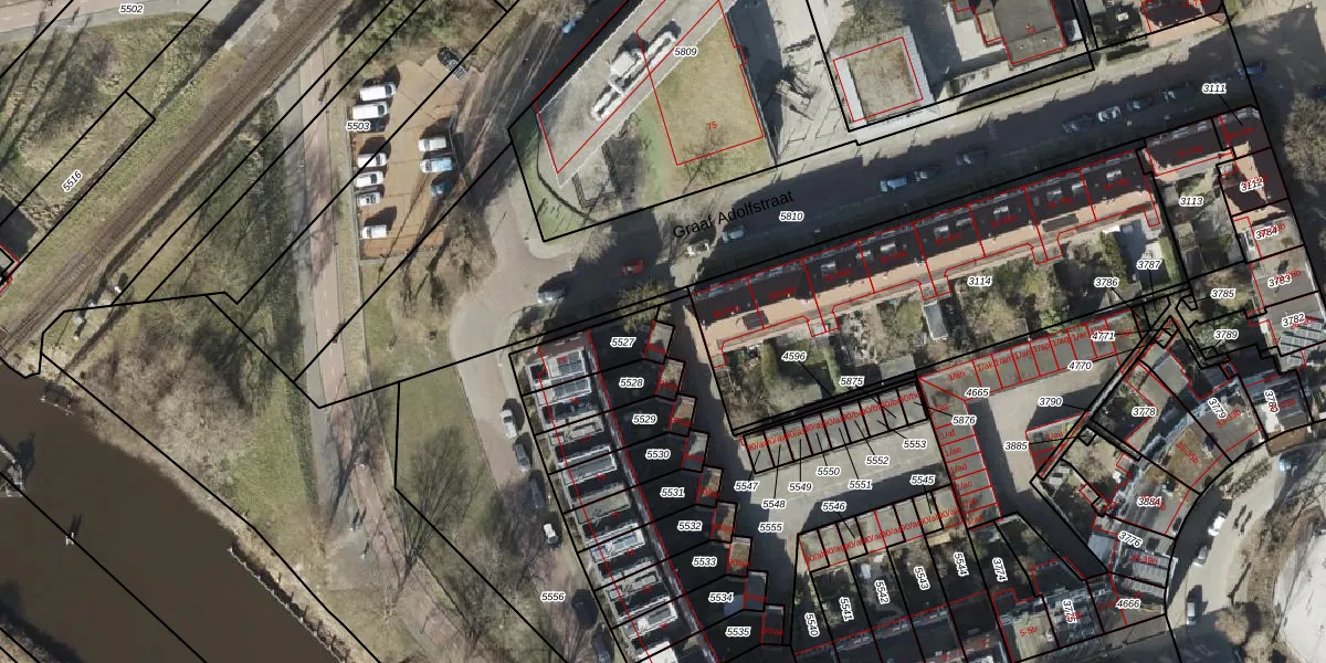 Het perceel waarop Graaf Adolfstraat 90-au staat heeft een oppervlakte van 166 m². Dit is een middelgroot perceel. De perceeloppervlakte wordt geregistreerd door het Kadaster. Gedetailleerde informatie over de maten van dit perceel kunt u vinden in het rapport Kadastrale kaart met maatvoering van Graaf Adolfstraat 90-au.