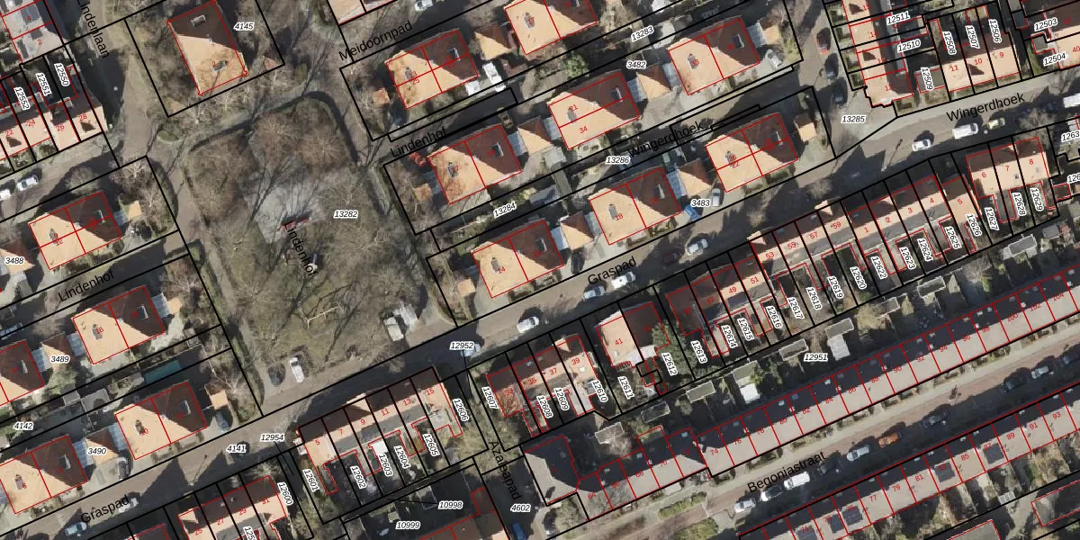 Het perceel waarop Graspad 16 staat heeft een oppervlakte van 1160 m². Dit is een zeer groot perceel. De perceeloppervlakte wordt geregistreerd door het Kadaster. Gedetailleerde informatie over de maten van dit perceel kunt u vinden in het rapport Kadastrale kaart met maatvoering van Graspad 16.