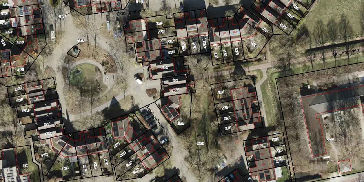 Grevingaheerd 121 is gelegen op kadastraal perceel GNG01AB1231. Deze kadastrale aanduiding is uniek en wordt gebruikt door het Kadaster om eigendomsrechten en andere zakelijke rechten vast te leggen. Het perceel maakt onderdeel uit van de kadastrale gemeente Groningen.