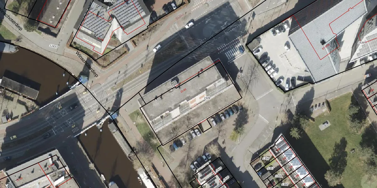 Het perceel waarop het adres ligt is GNG00-P-1509. De afkorting 'GNG00' staat voor kadastrale gemeente Groningen. De oppervlakte van het perceel is 1152 m². Dat is groter dan gemiddeld in Groningen, waar de gemiddelde perceeloppervlakte op 771,11 m² ligt. Het kleinste perceel in de kadastrale gemeente is 0 m² groot. De grootste perceeloppervlakte is 31,8 ha. Er zijn 31 adressen aanwezig op het perceel. In de Basisregistratie Kadaster (BRK) werden de grenzen van het perceel geregistreerd op 28-06-2012.