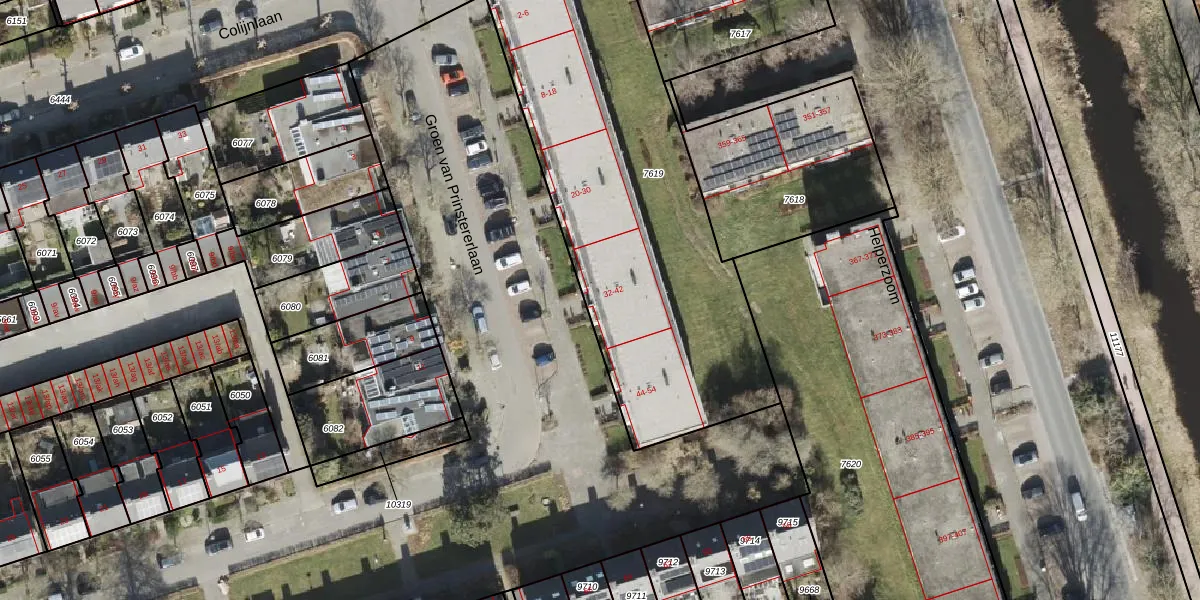 Het perceel waarop Groen van Prinstererlaan 34 staat heeft een oppervlakte van 1955 m². Dit is een zeer groot perceel. De perceeloppervlakte wordt geregistreerd door het Kadaster. Gedetailleerde informatie over de maten van dit perceel kunt u vinden in het rapport Kadastrale kaart met maatvoering van Groen van Prinstererlaan 34.