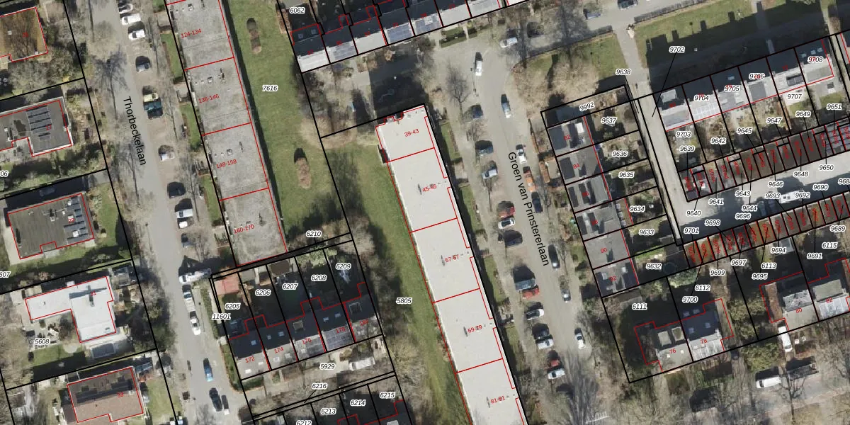 Het perceel waarop Groen van Prinstererlaan 55 staat heeft een oppervlakte van 2080 m². Dit is een zeer groot perceel. De perceeloppervlakte wordt geregistreerd door het Kadaster. Gedetailleerde informatie over de maten van dit perceel kunt u vinden in het rapport Kadastrale kaart met maatvoering van Groen van Prinstererlaan 55.