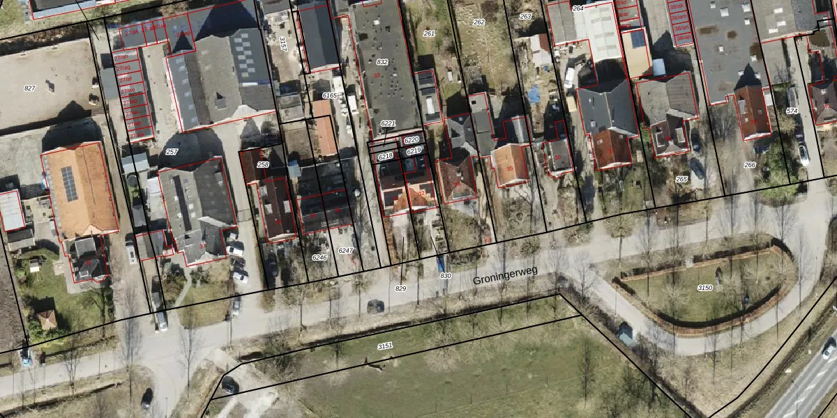 Groningerweg 32 is gelegen op kadastraal perceel GNG01AB830. Deze kadastrale aanduiding is uniek en wordt gebruikt door het Kadaster om eigendomsrechten en andere zakelijke rechten vast te leggen. Het perceel maakt onderdeel uit van de kadastrale gemeente Groningen.