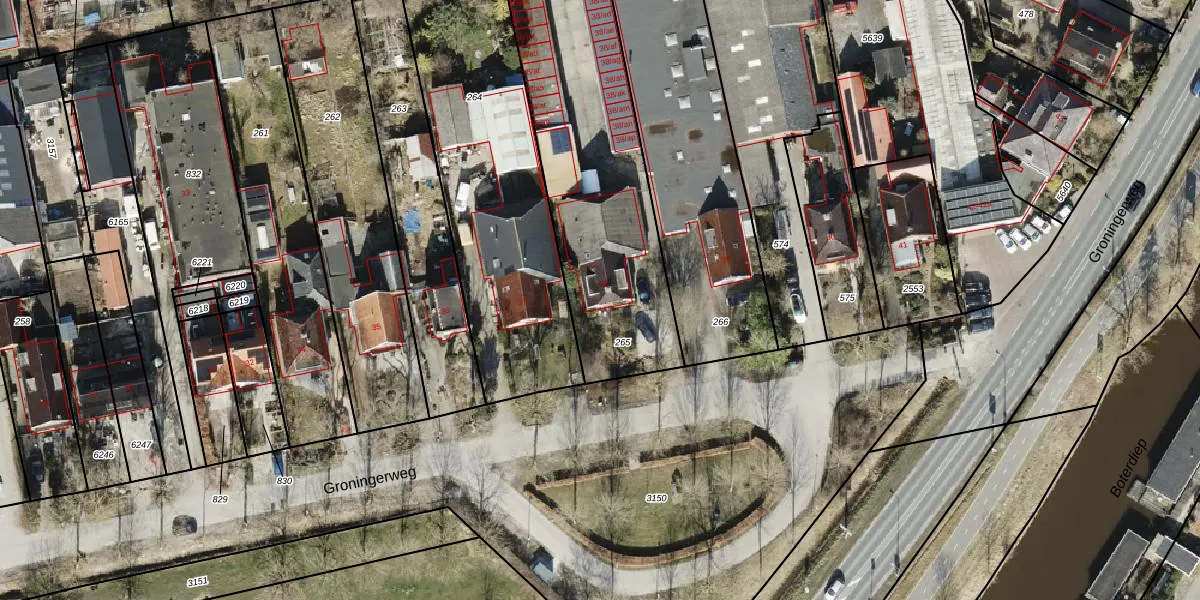Groningerweg 38 is gelegen op kadastraal perceel GNG01AB265. Deze kadastrale aanduiding is uniek en wordt gebruikt door het Kadaster om eigendomsrechten en andere zakelijke rechten vast te leggen. Het perceel maakt onderdeel uit van de kadastrale gemeente Groningen.