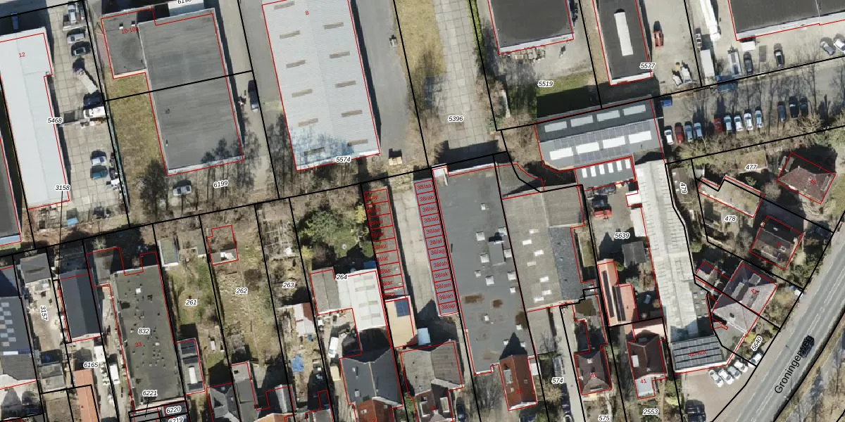 Groningerweg 38-ac is gelegen op kadastraal perceel GNG01AB265. Deze kadastrale aanduiding is uniek en wordt gebruikt door het Kadaster om eigendomsrechten en andere zakelijke rechten vast te leggen. Het perceel maakt onderdeel uit van de kadastrale gemeente Groningen.
