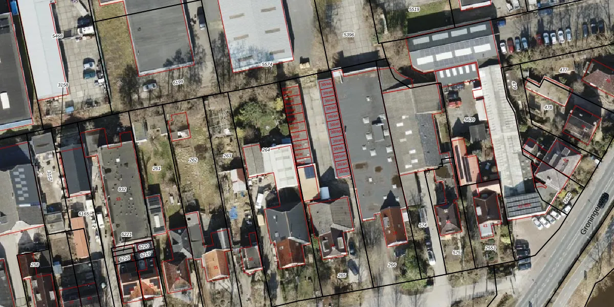 Het adres is gelegen op perceel 265 in de sectie AB en de kadastrale gemeente Groningen. De kadastrale aanduiding is aldus GNG01-AB-265. Het perceel is 1230 m² groot. Dat is kleiner dan de gemiddelde perceeloppervlakte in Groningen, dat op 2467,63 m² ligt. Het kleinste perceel in de kadastrale gemeente is 0 m² groot. De grootste perceeloppervlakte is 1,27 km². Op het perceel liggen in totaal 22 adressen. De huidige grenzen van het perceel zijn digitaal in de Basisregistratie Kadaster (BRK) geregistreerd op 16-04-2004.