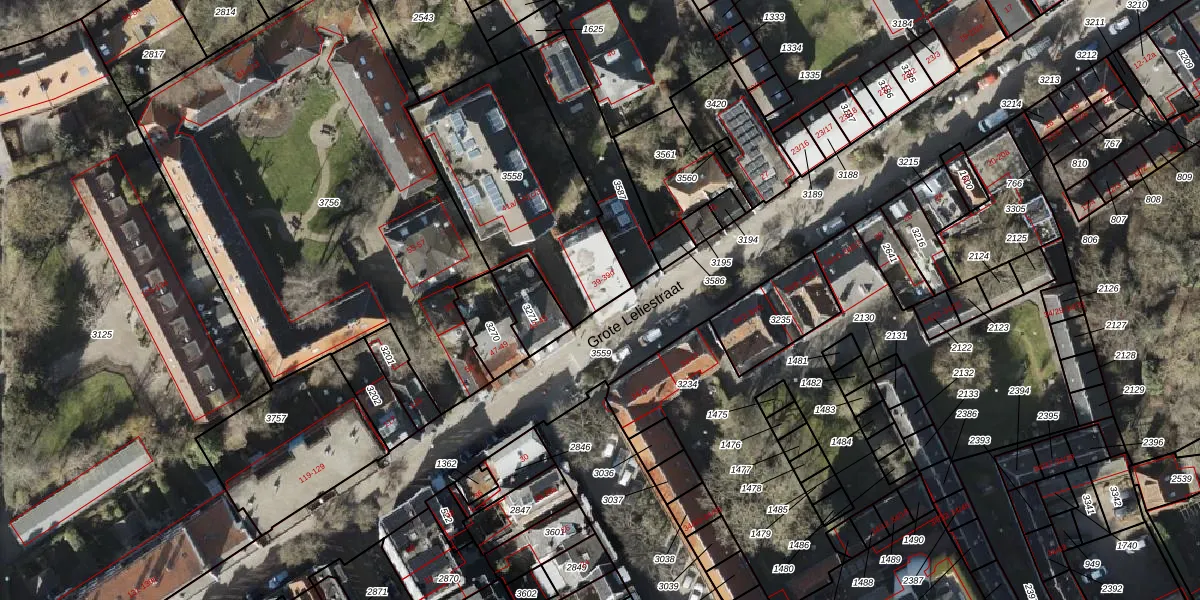 Het perceel waarop Grote Leliestraat 39 staat heeft een oppervlakte van 825 m². Dit is een groot perceel. De perceeloppervlakte wordt geregistreerd door het Kadaster. Gedetailleerde informatie over de maten van dit perceel kunt u vinden in het rapport Kadastrale kaart met maatvoering van Grote Leliestraat 39.