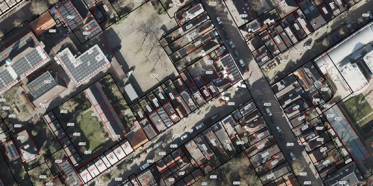 Het perceel waarop Grote Leliestraat 7-d staat heeft een oppervlakte van 93 m². Dit is een klein perceel. De perceeloppervlakte wordt geregistreerd door het Kadaster. Gedetailleerde informatie over de maten van dit perceel kunt u vinden in het rapport Kadastrale kaart met maatvoering van Grote Leliestraat 7-d.