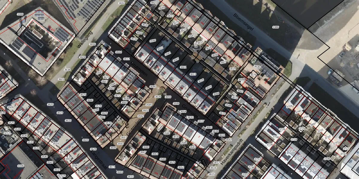 Gebruik de zoekbalk of klik op een perceel voor informatie over de adressen binnen dit perceel.