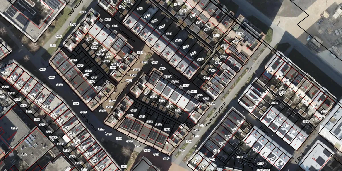 Het perceel waarop Grutmolen 4 staat heeft een oppervlakte van 90 m². Dit is een klein perceel. De perceeloppervlakte wordt geregistreerd door het Kadaster. Gedetailleerde informatie over de maten van dit perceel kunt u vinden in het rapport Kadastrale kaart met maatvoering van Grutmolen 4.