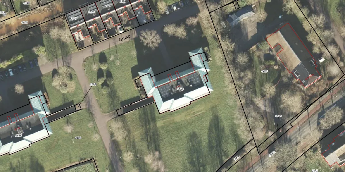 Het perceel waarop Grutto 1 staat heeft een oppervlakte van 921 m². Dit is een groot perceel. De perceeloppervlakte wordt geregistreerd door het Kadaster. Gedetailleerde informatie over de maten van dit perceel kunt u vinden in het rapport Kadastrale kaart met maatvoering van Grutto 1.