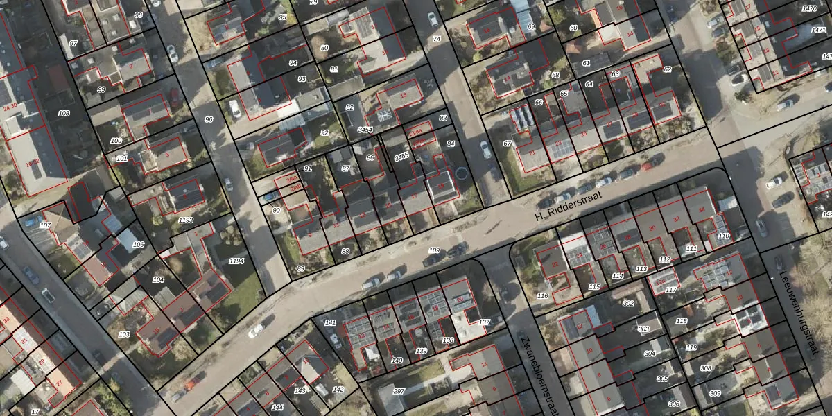 H. Ridderstraat 17 is gelegen op kadastraal perceel GNG01AC3455. Deze kadastrale aanduiding is uniek en wordt gebruikt door het Kadaster om eigendomsrechten en andere zakelijke rechten vast te leggen. Het perceel maakt onderdeel uit van de kadastrale gemeente Groningen.