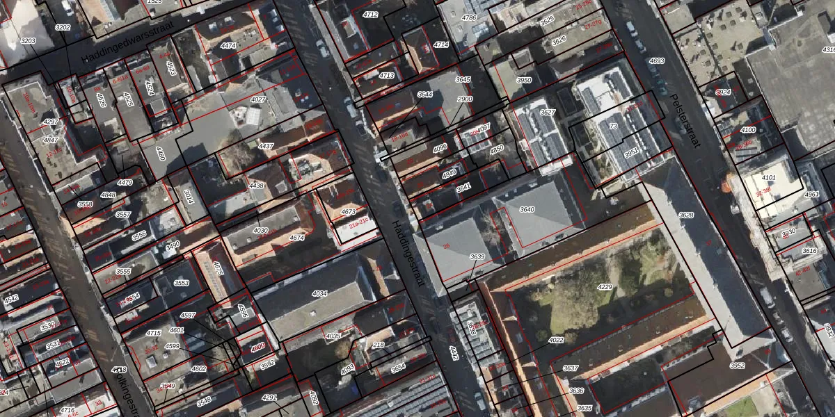 Haddingestraat 24 is gelegen op kadastraal perceel GNG00I3641. Deze kadastrale aanduiding is uniek en wordt gebruikt door het Kadaster om eigendomsrechten en andere zakelijke rechten vast te leggen. Het perceel maakt onderdeel uit van de kadastrale gemeente Groningen.
