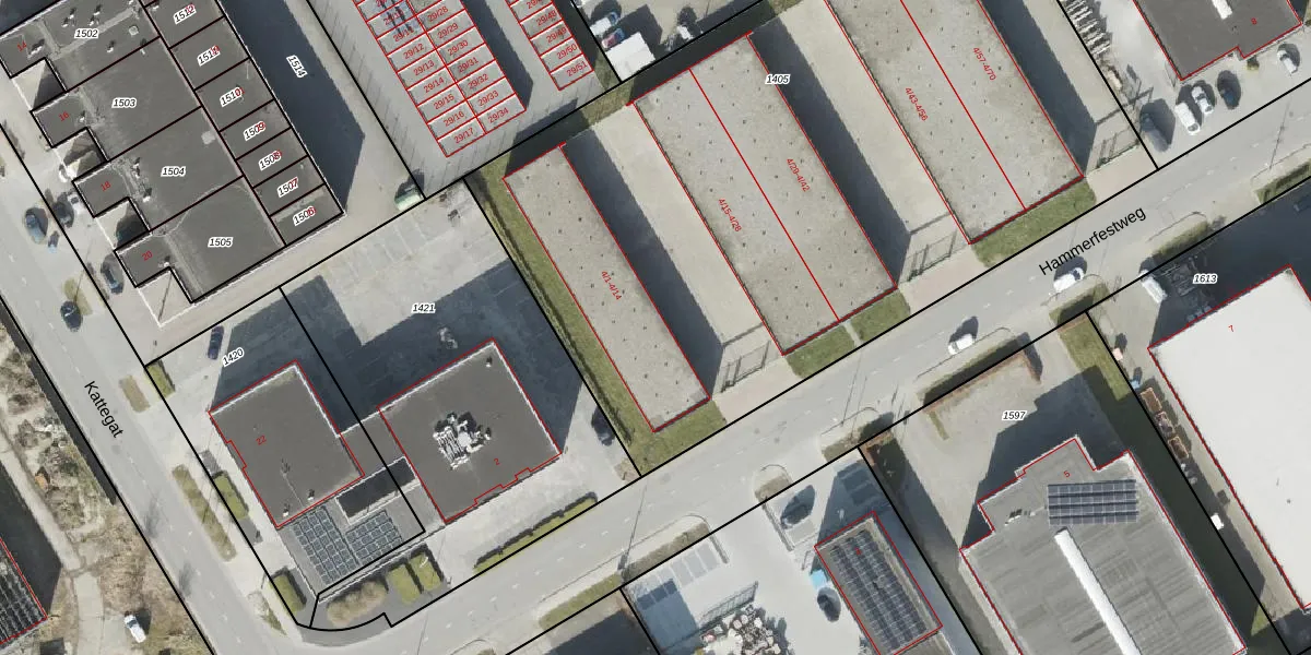Het perceel waarop Hammerfestweg 4-5 staat heeft een oppervlakte van 4887 m². Dit is een zeer groot perceel. De perceeloppervlakte wordt geregistreerd door het Kadaster. Gedetailleerde informatie over de maten van dit perceel kunt u vinden in het rapport Kadastrale kaart met maatvoering van Hammerfestweg 4-5.