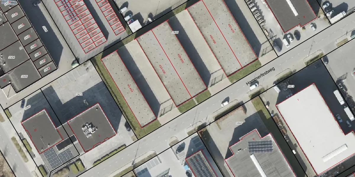 Het perceel waarop Hammerfestweg 4-28 staat heeft een oppervlakte van 4887 m². Dit is een zeer groot perceel. De perceeloppervlakte wordt geregistreerd door het Kadaster. Gedetailleerde informatie over de maten van dit perceel kunt u vinden in het rapport Kadastrale kaart met maatvoering van Hammerfestweg 4-28.