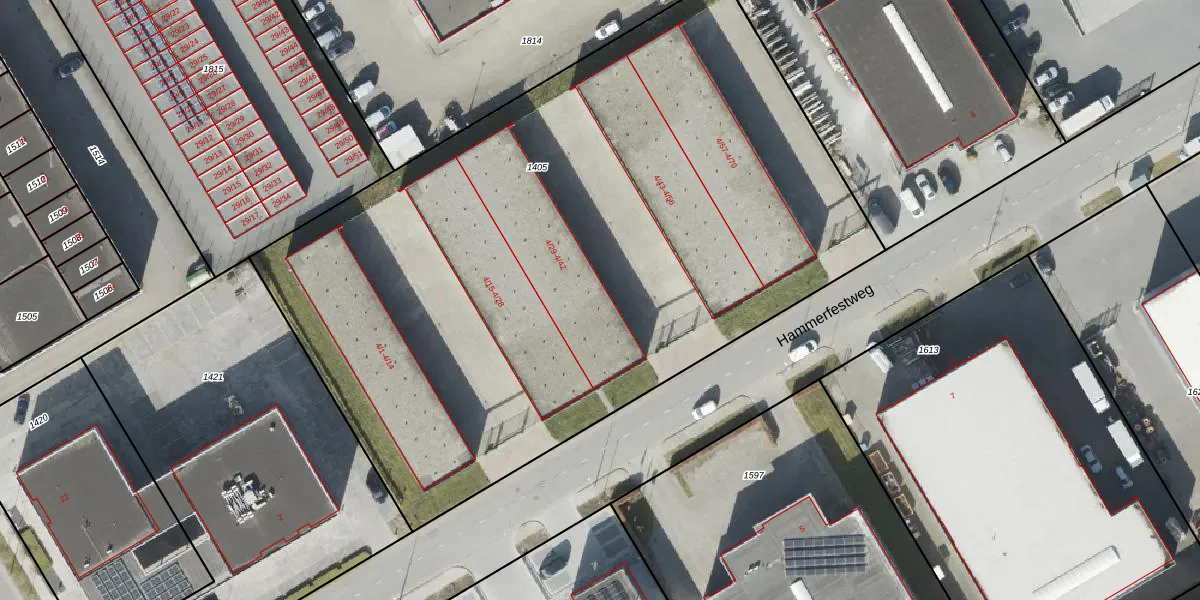 Het perceel waarop Hammerfestweg 4-34 staat heeft een oppervlakte van 4887 m². Dit is een zeer groot perceel. De perceeloppervlakte wordt geregistreerd door het Kadaster. Gedetailleerde informatie over de maten van dit perceel kunt u vinden in het rapport Kadastrale kaart met maatvoering van Hammerfestweg 4-34.
