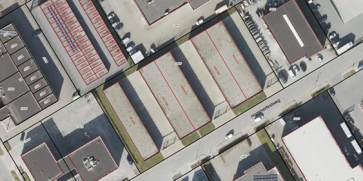 Hammerfestweg 4-36 is gelegen op kadastraal perceel NDK00D1405. Deze kadastrale aanduiding is uniek en wordt gebruikt door het Kadaster om eigendomsrechten en andere zakelijke rechten vast te leggen. Het perceel maakt onderdeel uit van de kadastrale gemeente Noorddijk.
