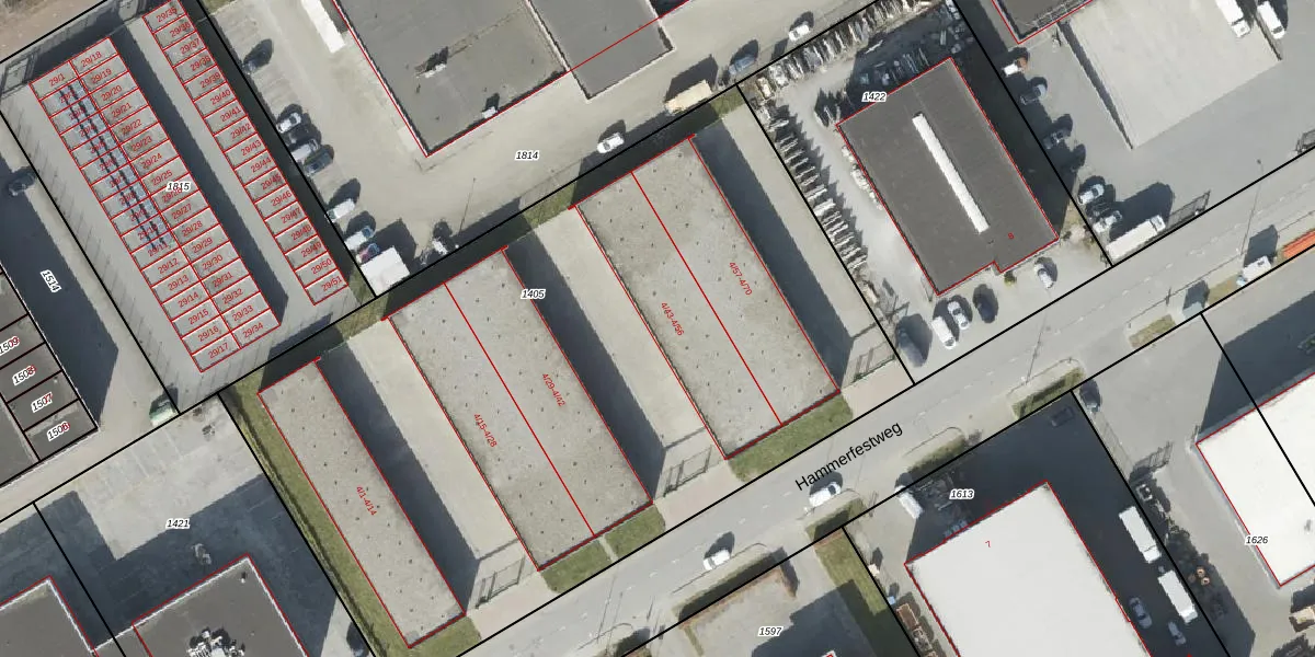 Het perceel waarop Hammerfestweg 4-43 staat heeft een oppervlakte van 4887 m². Dit is een zeer groot perceel. De perceeloppervlakte wordt geregistreerd door het Kadaster. Gedetailleerde informatie over de maten van dit perceel kunt u vinden in het rapport Kadastrale kaart met maatvoering van Hammerfestweg 4-43.