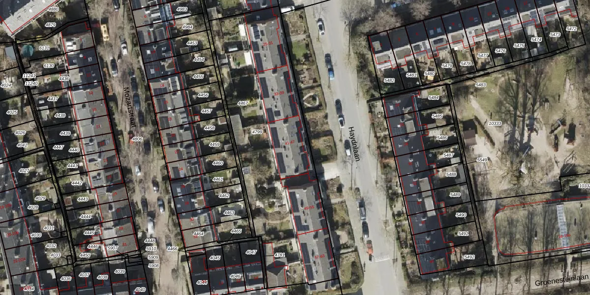 Het perceel waarop Haydnlaan 45 staat heeft een oppervlakte van 2272 m². Dit is een zeer groot perceel. De perceeloppervlakte wordt geregistreerd door het Kadaster. Gedetailleerde informatie over de maten van dit perceel kunt u vinden in het rapport Kadastrale kaart met maatvoering van Haydnlaan 45.