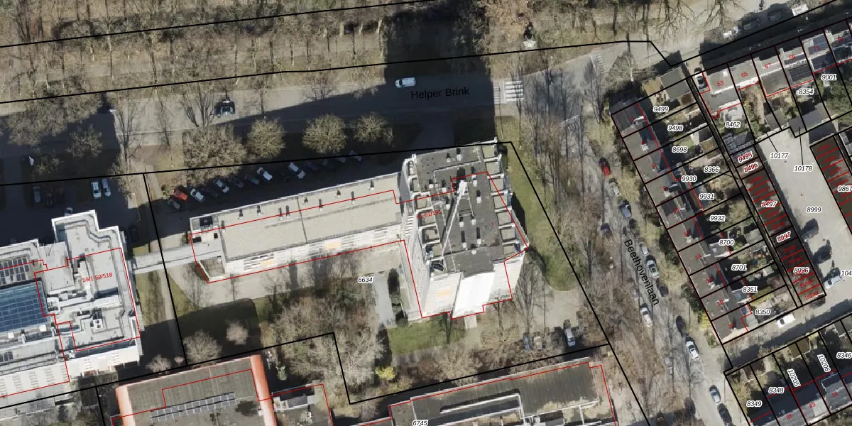 Het perceel waarop Helper Brink 61 staat heeft een oppervlakte van 4630 m². Dit is een zeer groot perceel. De perceeloppervlakte wordt geregistreerd door het Kadaster. Gedetailleerde informatie over de maten van dit perceel kunt u vinden in het rapport Kadastrale kaart met maatvoering van Helper Brink 61.